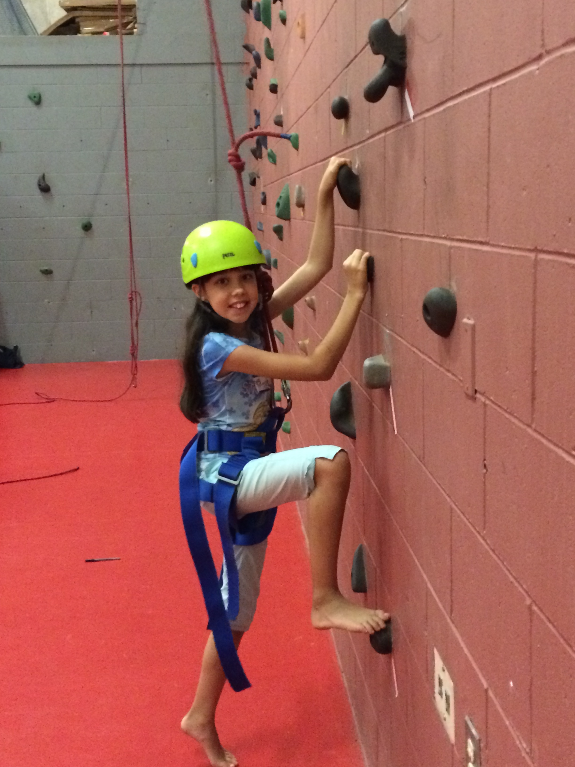 Belle on the climbing wall.